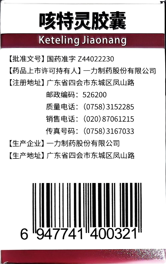通用名称】咳特灵胶囊