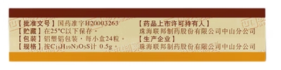 2.小儿一日剂量按体重20~40mg/Kg,每8小时1次;3个月以下婴儿一日剂量按体重30mg/Kg,每12小时1次;