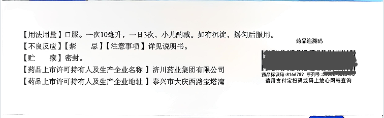 【用法用量】口股。一次10毫升,一日3次,小儿酌减。如有沉淀,摇匀后服用。
