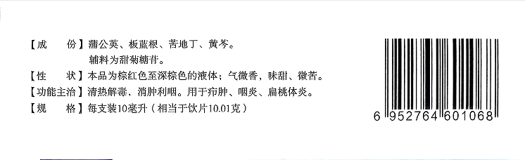 【主要成份】蒲公英、板蓝根、苦地丁、黄芩。辅料为甜菊糖苷。