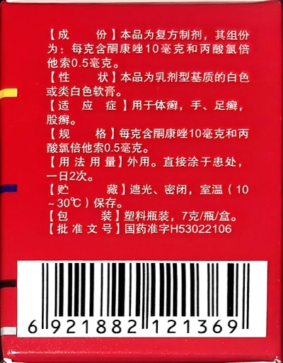 【主要成份】本品为复方制剂,其组份为:每克含酮康唑10毫克和丙酸氨倍他索0.5毫克。【性状】本品为乳剂型基质的自色或类白色软膏。