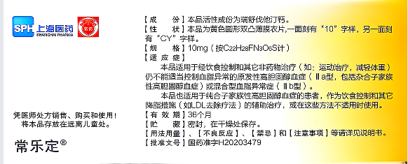 【用法用量】在治疗开始前,应给予患者标准的降胆固醇饮食控制,并在治疗期间保持饮食控制。本品的使用应遵循个体化原则,综合考虑患者个体的胆固醇水平、预期的心血管危险性以及发生不良反应的潜在危险性。