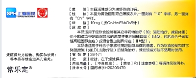 【性状】本品为黄色圆形双凸薄膜衣片,一面刻有“10”字样,另一面刻有“CY”字样。