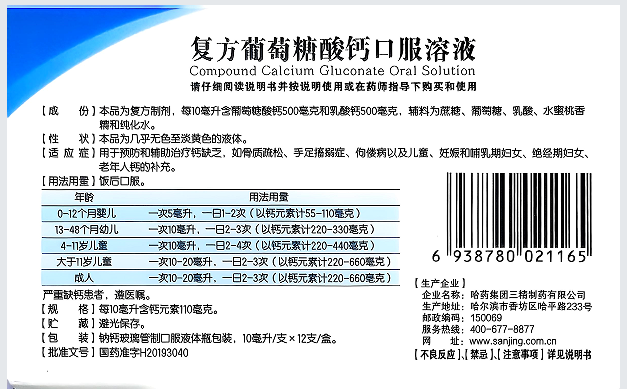 【主要成份】本品为复方制剂,每10毫升含葡萄塘酸钙500毫克和乳酸钙500毫克,辅料为蔗糖、葡萄糖、乳酸、水蜜桃香精和纯化水。
